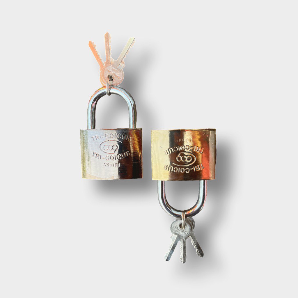 قفل متين مصنوع من النحاس عالي الجودة بحجم 63 ملم، يوفر حماية فائقة بفضل تصميمه الصلب والمقاوم للتآكل. مثالي لتأمين الأبواب الثقيلة، البوابات، والمستودعات. يتميز بآلية إغلاق سلسة لضمان سهولة الاستخدام مع مستوى أمان عالي، ويأتي مع مفتاح متطابق لفتح وإغلاق آمن.