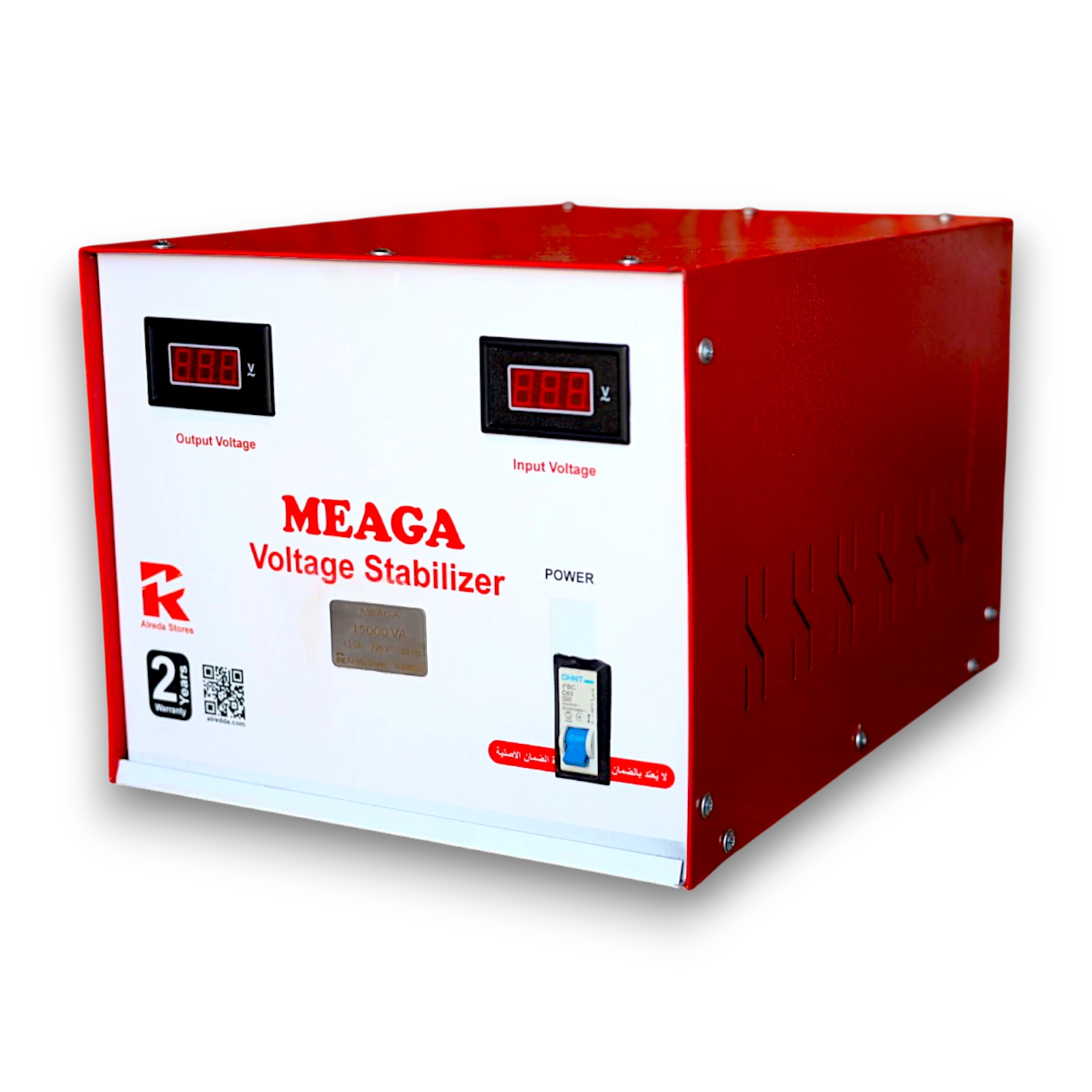 استبلايزر (MEAGA 15) مصمم لتثبيت الجهد الكهربائي بدقة عالية، مما يحافظ على أداء الأجهزة الكهربائية ويمنع تلفها الناتج عن تقلبات الفولت. مناسب للمصانع، الورش، المنازل، والمعدات الحساسة التي تحتاج إلى جهد مستقر.