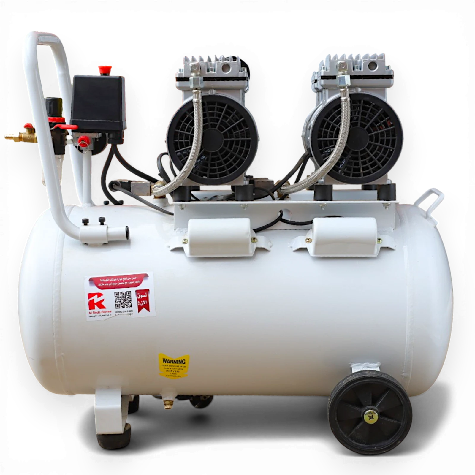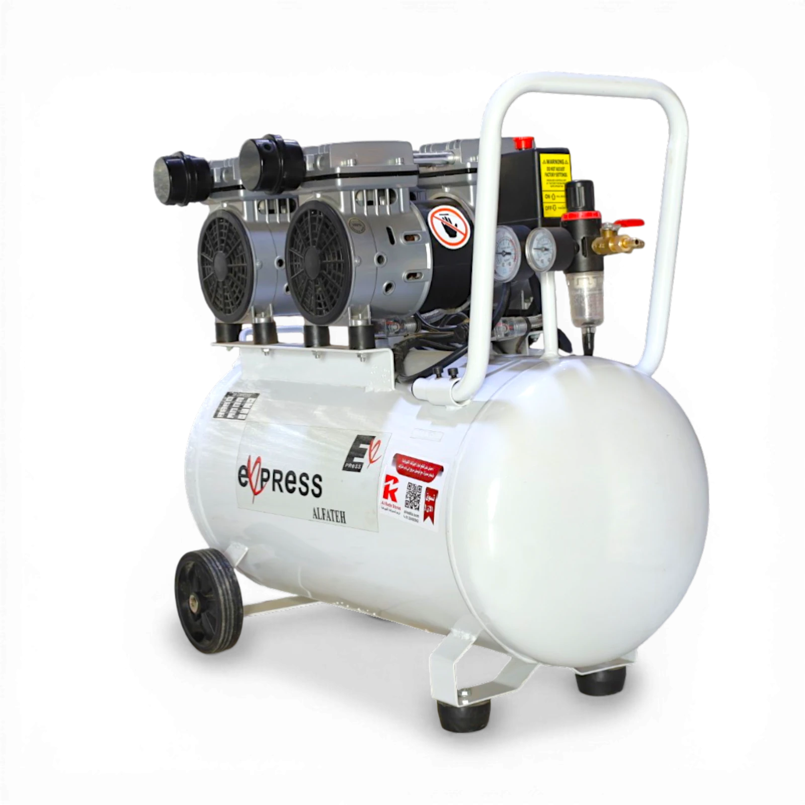 كمبروسر هواء كاتم طبي بسعة 50 لتر مزود برأسين (2 هيد) وقدرة 550 وات بملف نحاس من اكسبريس، مصمم لتوفير ضغط هواء ثابت مع مستوى ضوضاء منخفض. يعمل بنظام بدون زيت مما يساعد على إنتاج هواء نظيف ويقلل من الحاجة إلى الصيانة، ويجعله مناسبًا للاستخدام في العيادات والورش والأعمال التي تتطلب تشغيل هادئ.