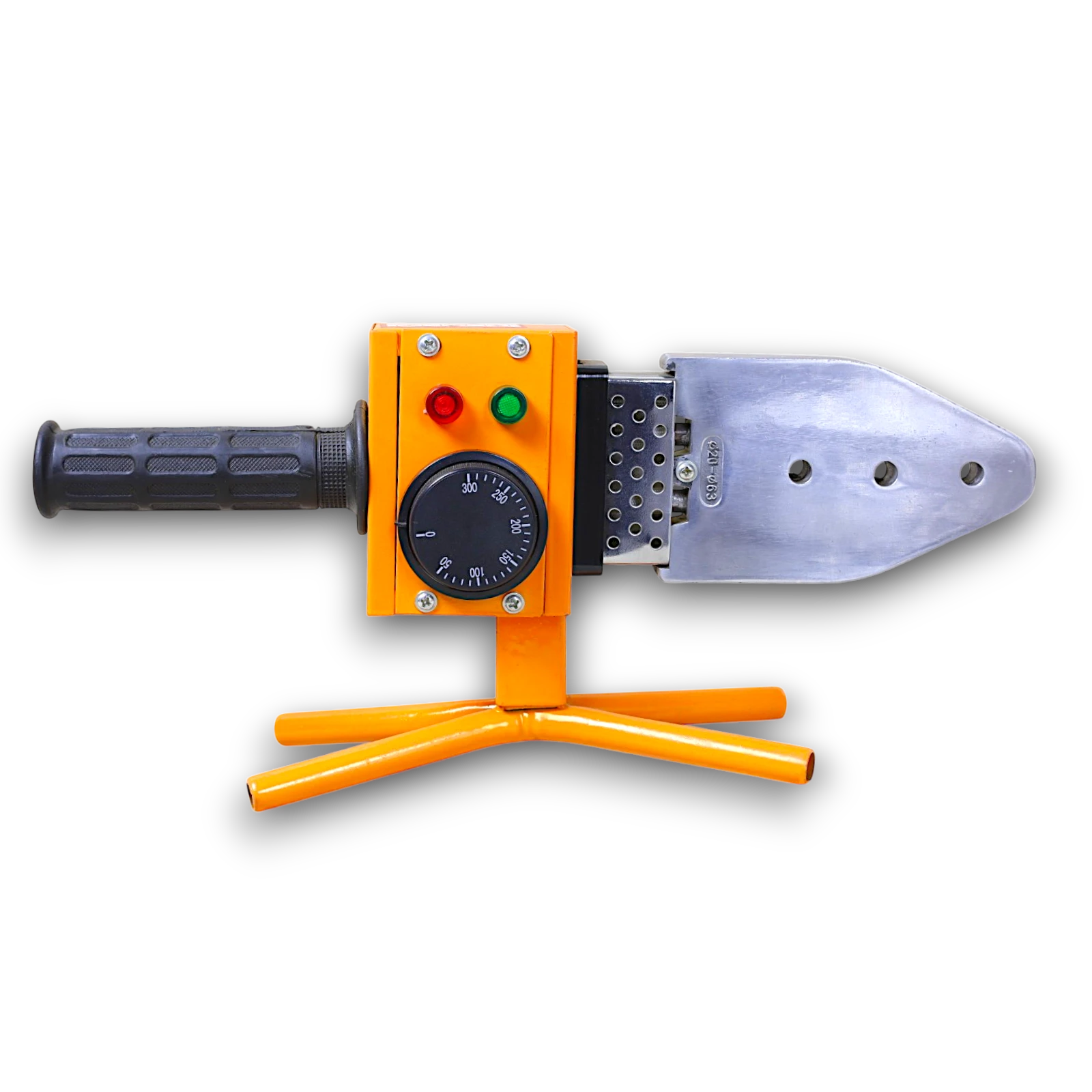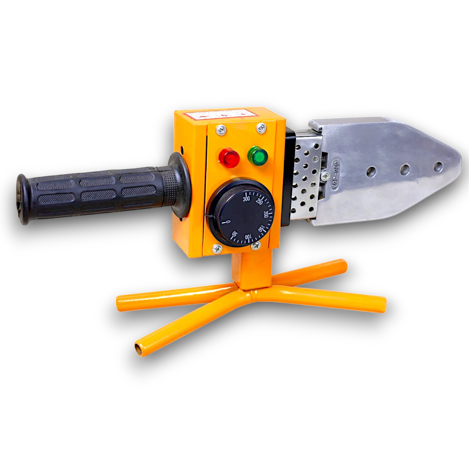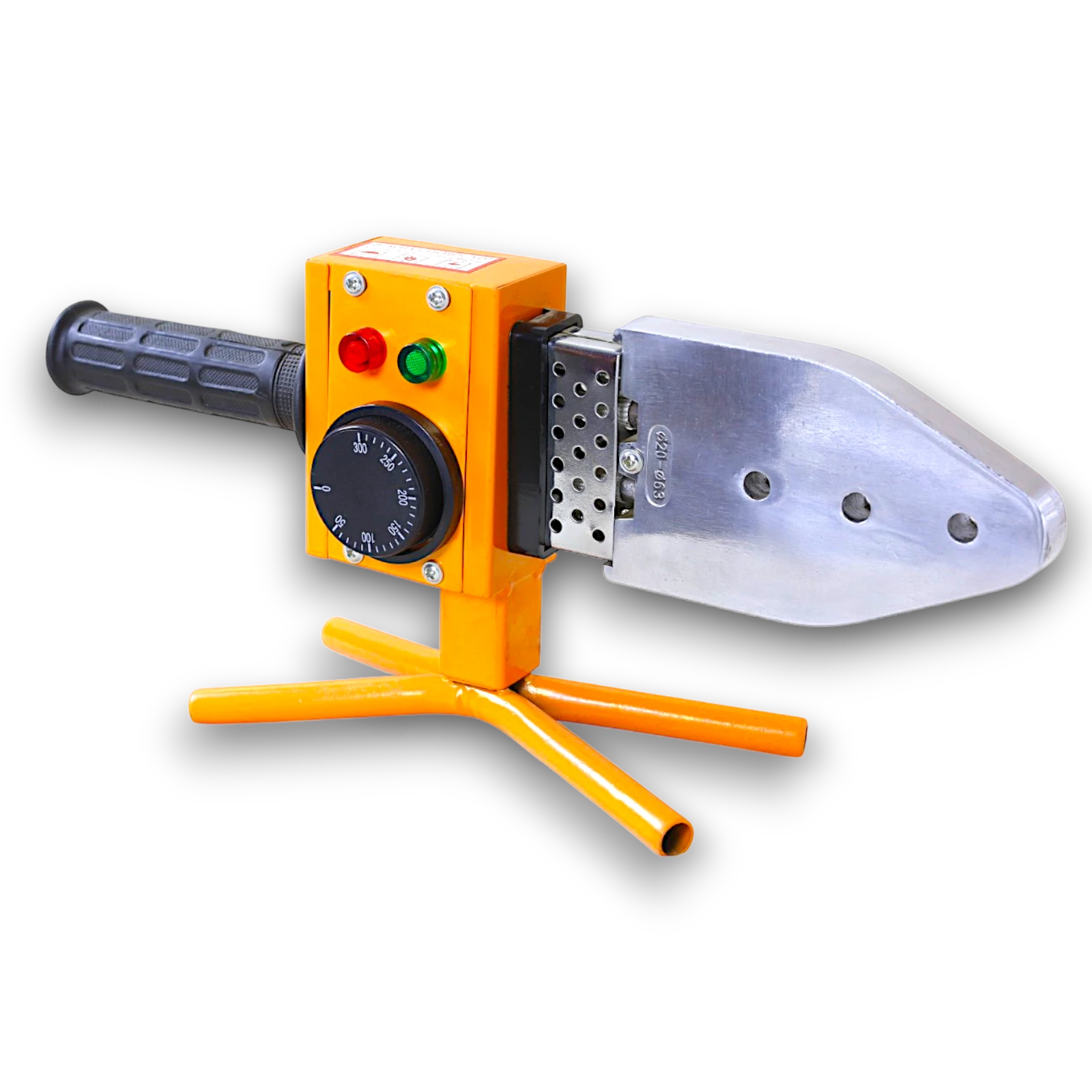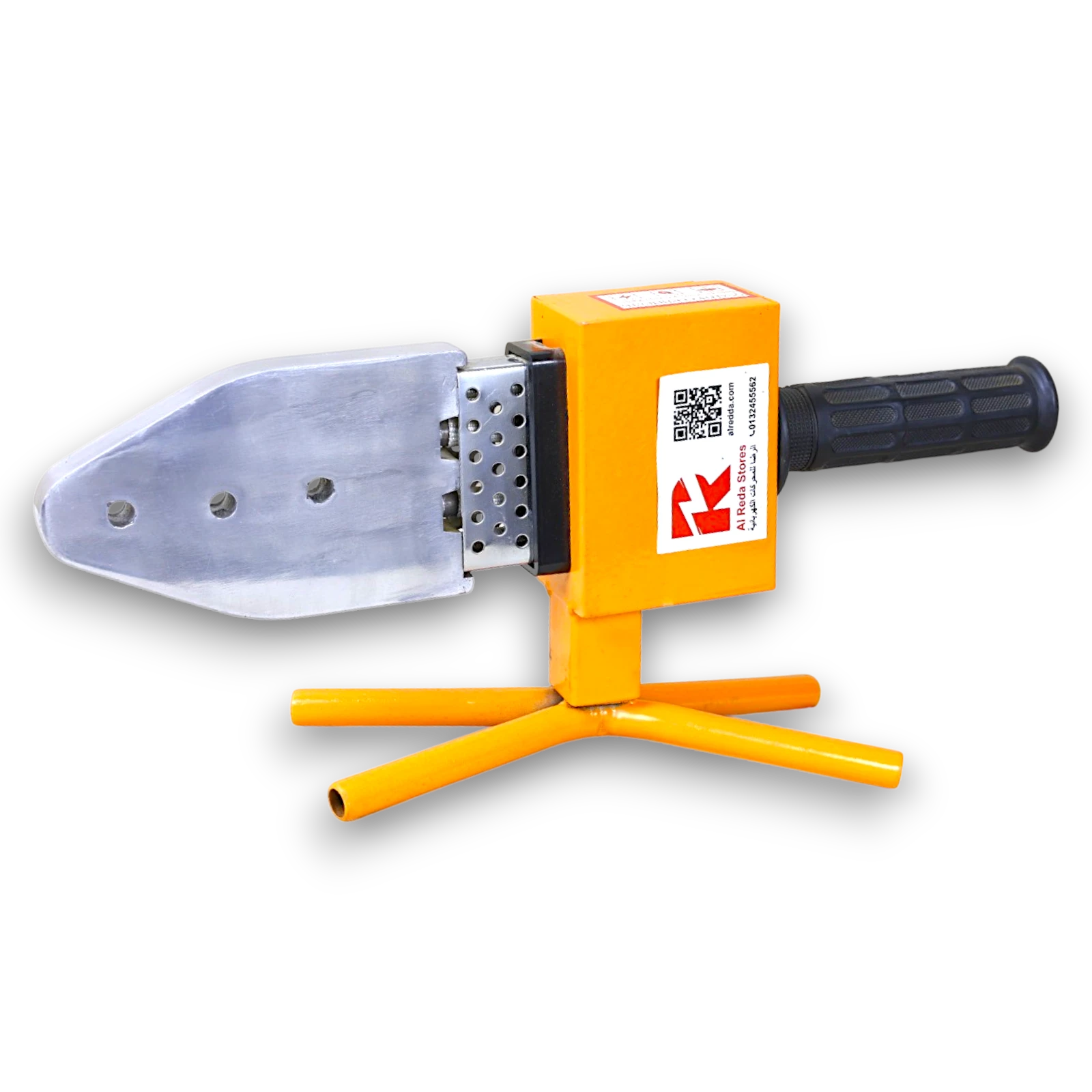 ماكينة لحام مواسير بولي بقدرة 1200 وات مزودة بسخان واحد، مخصصة للحام مواسير البولي بروبلين والبلاستيك الحراري. تعمل على تسخين الأطراف ثم دمجها للحصول على لحام قوي ومتين بدون تسريب.