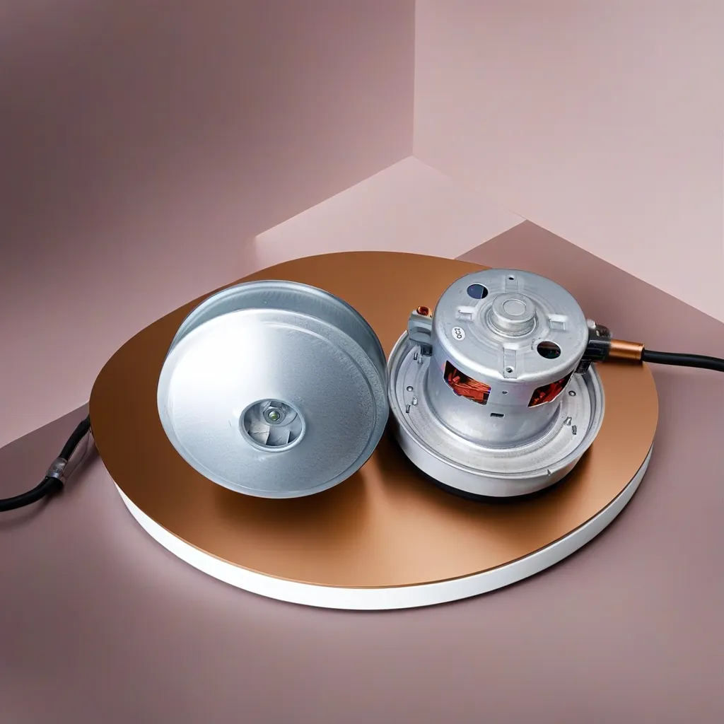 محرك مكنسة كهربائية هو جزء أساسي في تصميم الأجهزة المنزلية، ويعد المحرك المحوري الرئيسي لدفع وتشغيل رأس المكنسة. إليك وصفًا لمحرك مكنسة