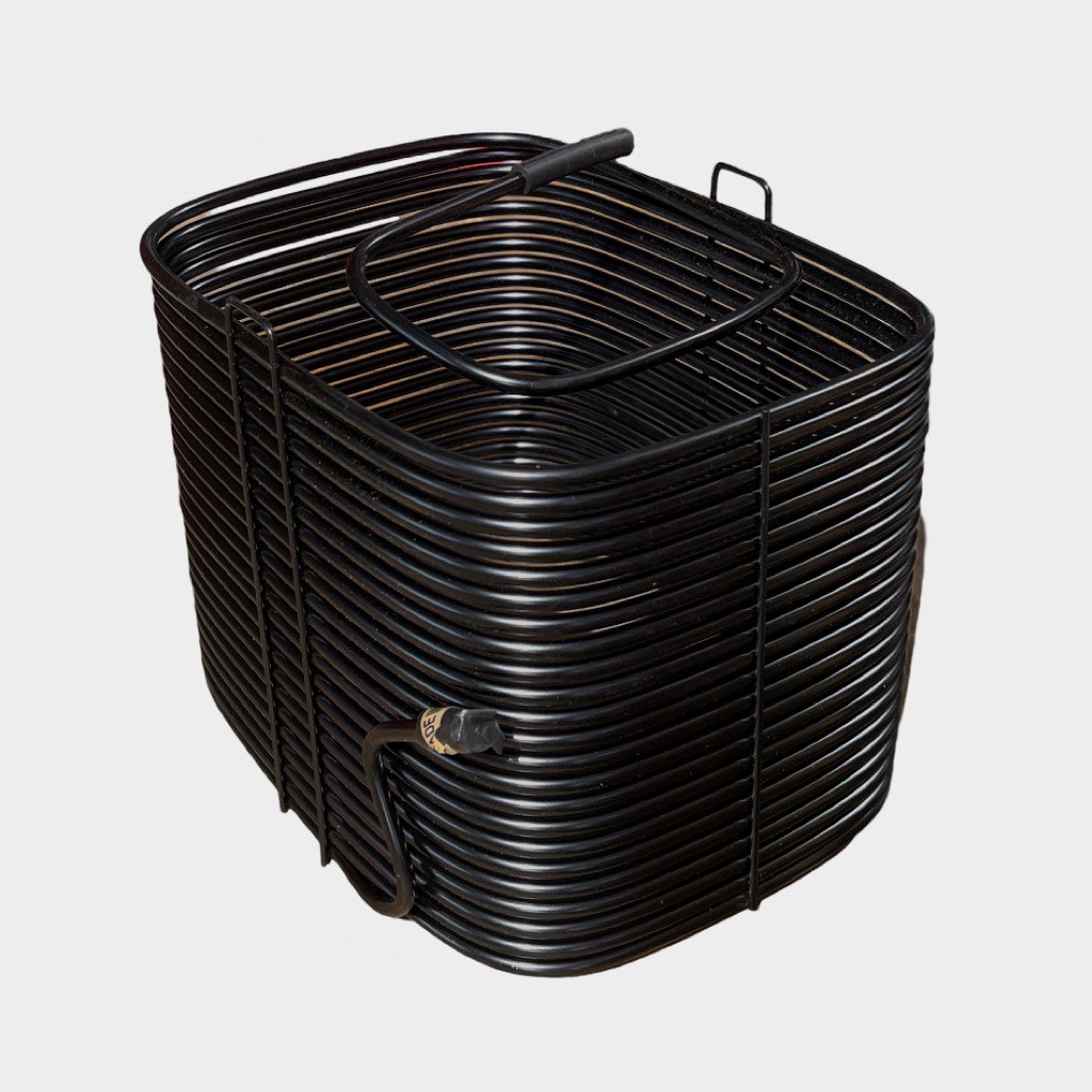 - يُصنع المكثف من الحديد، وهو مادة متينة ولكنها أقل كفاءة في توصيل الحرارة مقارنة بالنحاس. غالبًا ما يكون تصميمه على شكل لفائف أو أنابيب، مما يزيد من سطح التبادل الحراري.